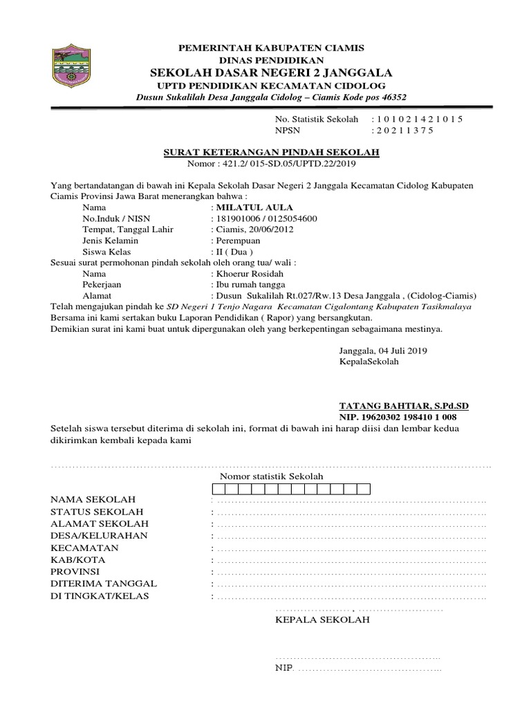 Format surat keterangan pindah sekolah. 15 contoh surat keterangan penghasilan, domisili, pindah sekolah, magang dll. Kendati demikian, anda pun harus mencantumkan nama dan tanda tangan orang tua pada surat tersebut, agar pihak sekolah bisa. Contoh surat pindah sekolah sekolah merupakan hal penting bagi setiap oranganda yang kini telah menjadi orangtua tentunya berkonsentrasi secara khusus dalam hal ini. Search surat permohonan permintaan alkes pustu baampah docx.