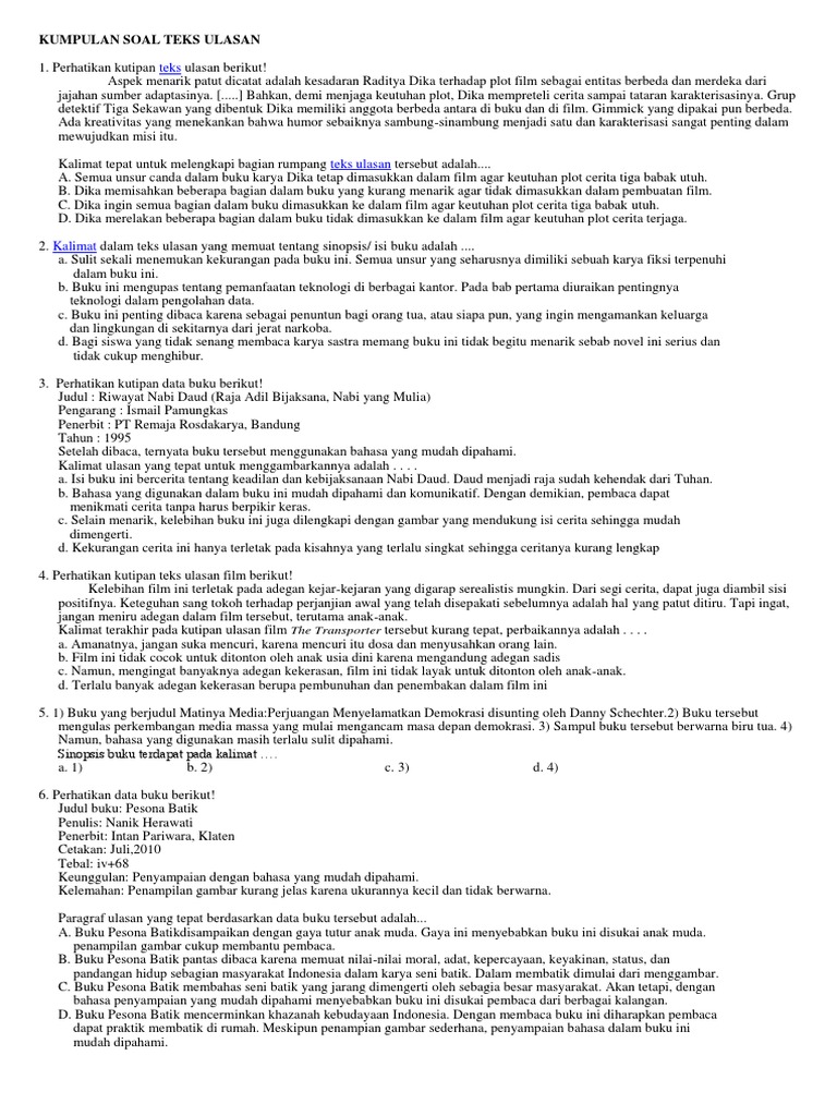 Tapi ingat, jangan meniru adegan dalam film. Buku ini penting dibaca karena sebagai. Perhatikan kutipan teks ulasan film berikut! Sulit sekali menemukan kekurangan pada buku ini. Semua unsur yang seharusnya dimiliki sebuah karya fiksi terpenuhi dalam buku ini.