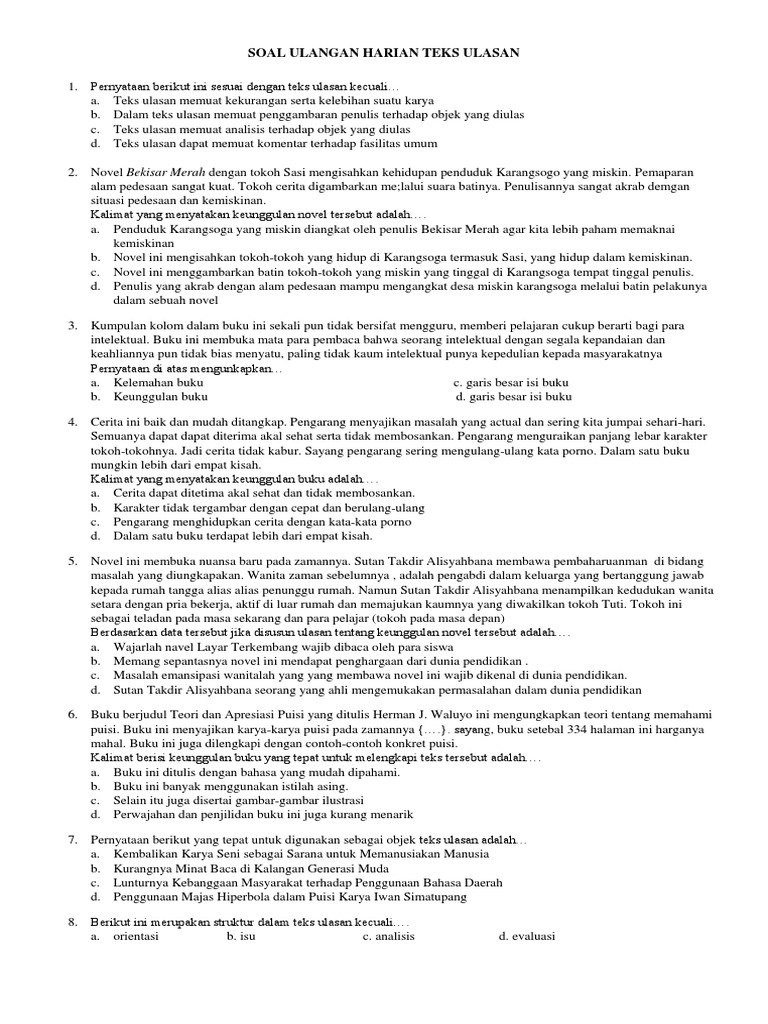 Wisanggeni Docx Teks Ulasan Adalah Teks Yang Berisi Tinjauan Suatu Karya Untuk Mengetahui Kualitas Kelebihan Dan Kekurangan Yang Dimiliki Karya Course Hero from www.coursehero.com Pada bab pertama diuraikan pentingnya teknologi dalam pengolahan data. Semua unsur yang seharusnya dimiliki sebuah karya fiksi terpenuhi dalam buku ini. Pada bab pertama diuraikan pentingnya teknologi dalam pengolahan data. Semua unsur yang seharusnya dimiliki sebuah karya fiksi terpenuhi dalam buku ini. Kalimat dalam teks ulasan yang memuat tentang sinopsis/ isi buku adalah. Semua unsur yang seharusnya dimiliki sebuah karya fiksi terpenuhi dalam buku ini. Kalimat dalam teks ulasan berikutyang memuat tentang sinopsis/ isi buku adalah …. Dari segi cerita, dapat juga diambil sisi positifnya.