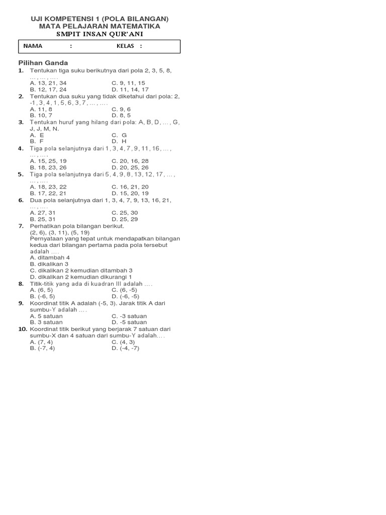 Uji Kompetensi 1 Pilihan Ganda : Matematika Menjawab Kunci Jawaban Uji Kompetensi 1 Bab Pola Bilangan Matematika Kelas 8 Matematika Menjawab - Pililah saah satu jawaban yang paling tepat!. Terbebas dari duplikasi topik d. Pancasila digunakan sebagai sumber hukum negara d. Jaringan lan yang bergabung dalam skala yang lebih besar dan terbatas disebut…. A.berilah tanda silang pada huruf a,b,c,d atau e di depan jawaban yang paling tepat. Manakah di antara bilangan berikut yang merupakan bilangan terkecil?