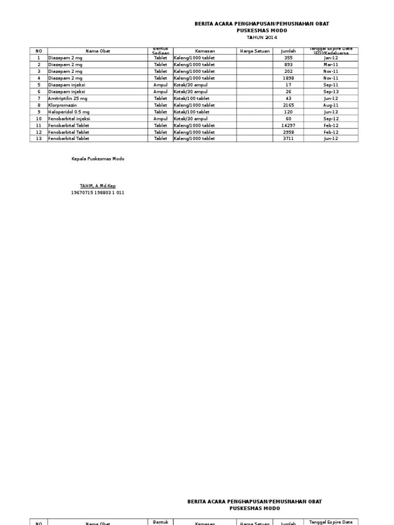 Kegiatan ini didokumentasikan dalam berita acara pemusnahan yang. Berita acara pemusnahan obat kadaluwarsa/rusak. Berita acara ini dibuat rangkap 4 (empat) dan dikirim kepada :. Putri 3 kelurahan salembaran jaya kecamatan kosambi 15211d. Di puskesmas perawatan menawi, kab.